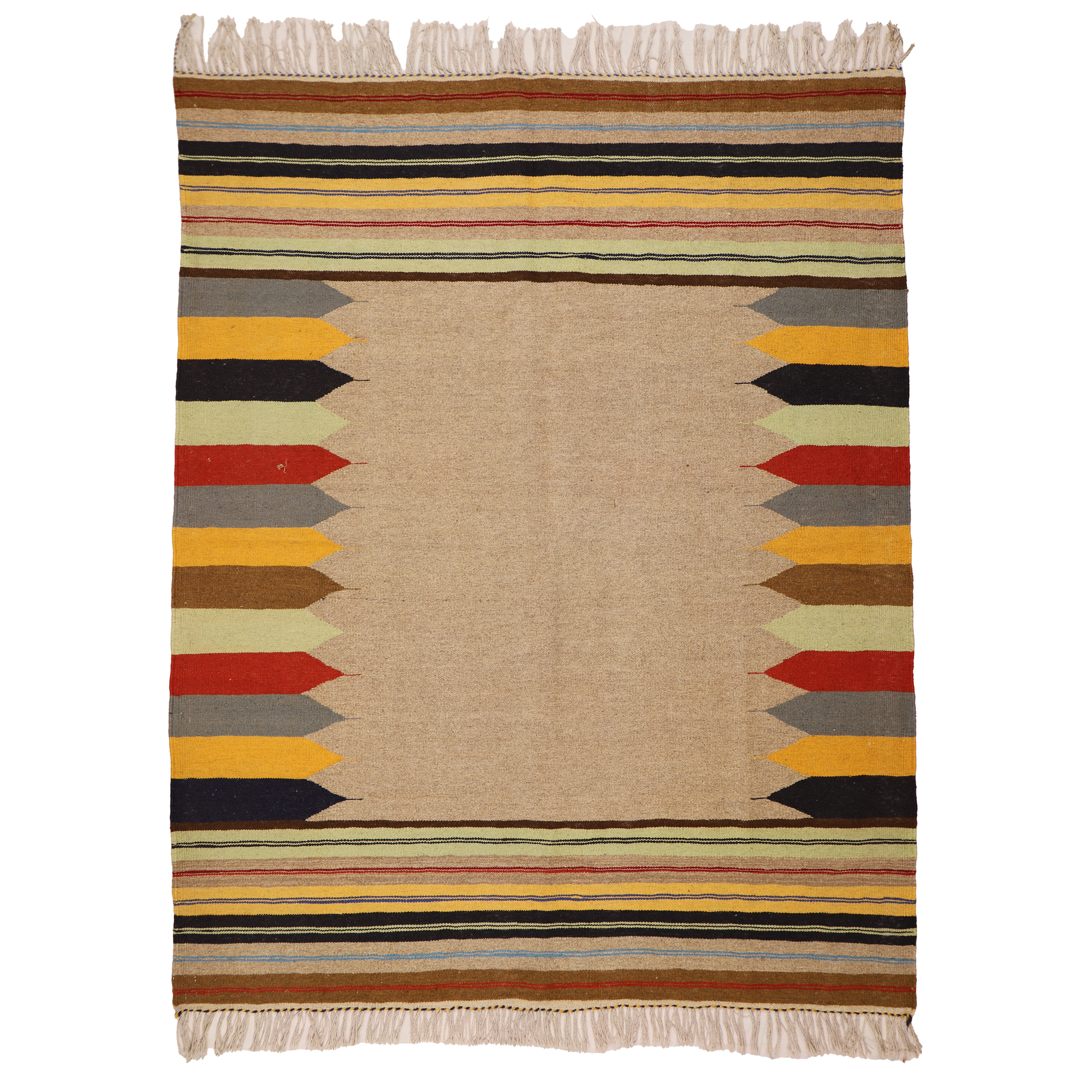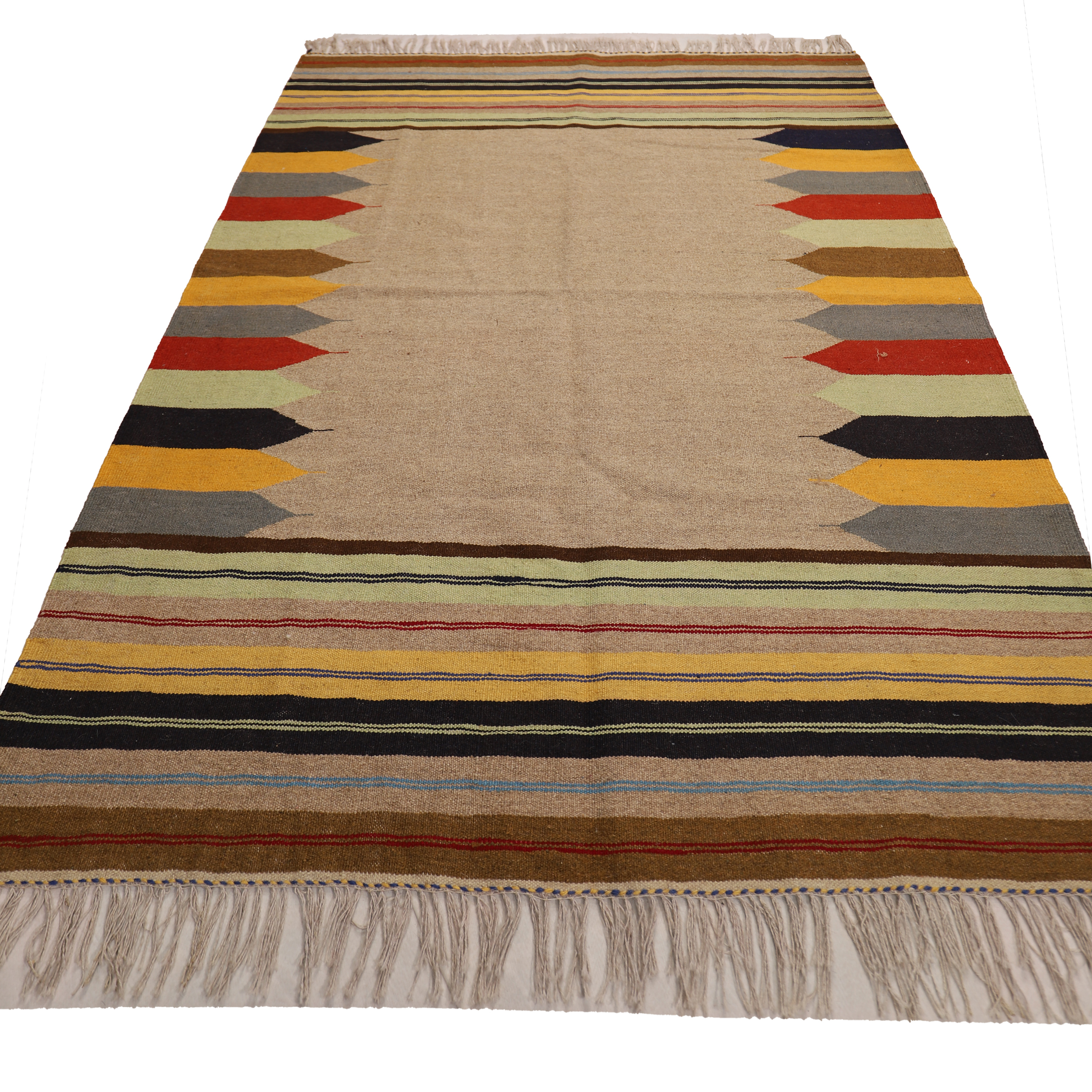 El Dokuma Yün Kilim 146×206 cm | Krem | Premium