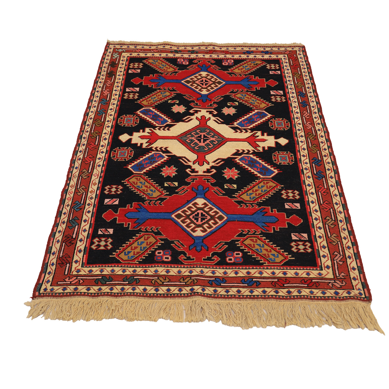 El Dokuma Yün Kilim 108×154 cm | Kırmızı | Elit Tasarım