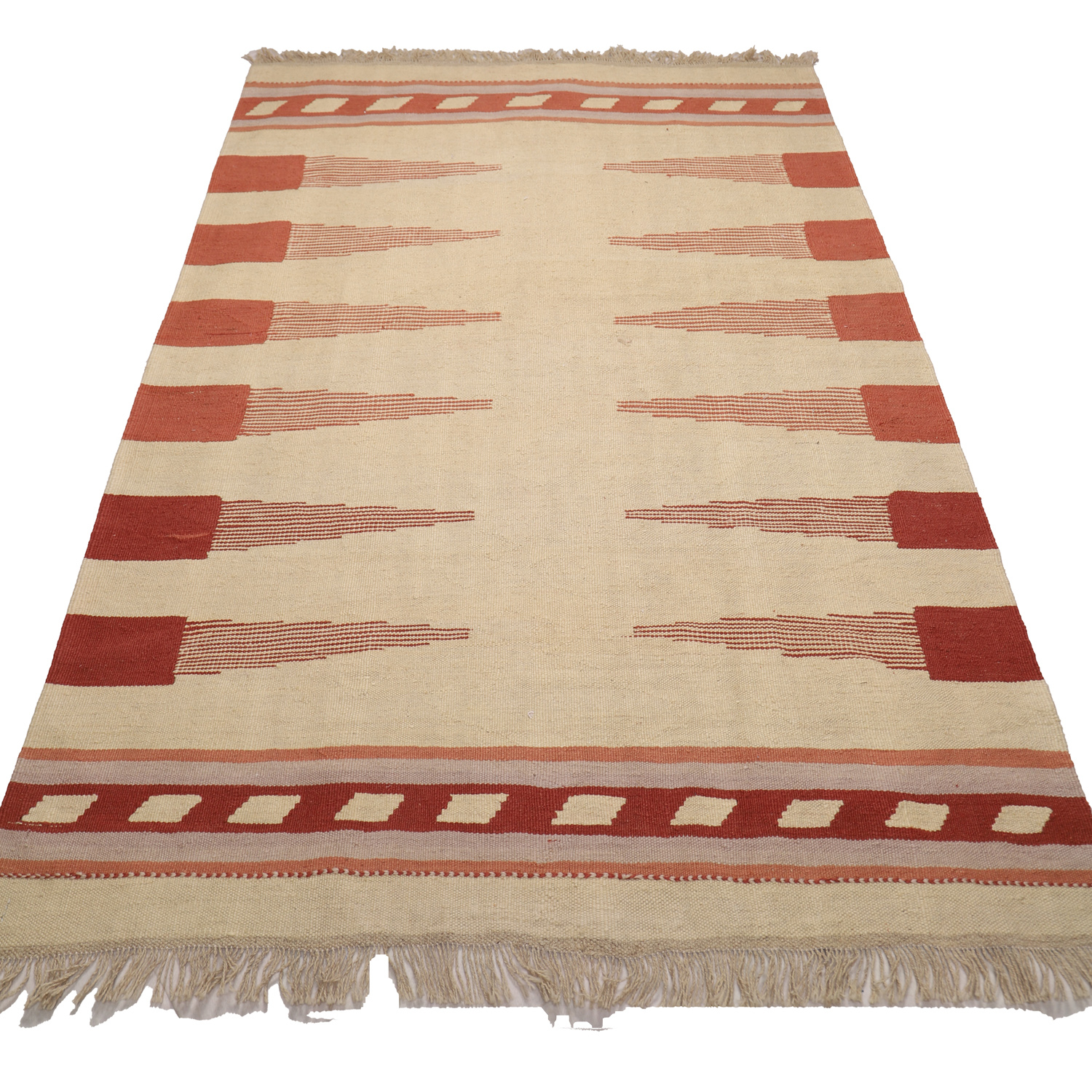 El Dokuma Yün Kilim 205×140 cm | Krem | Premium