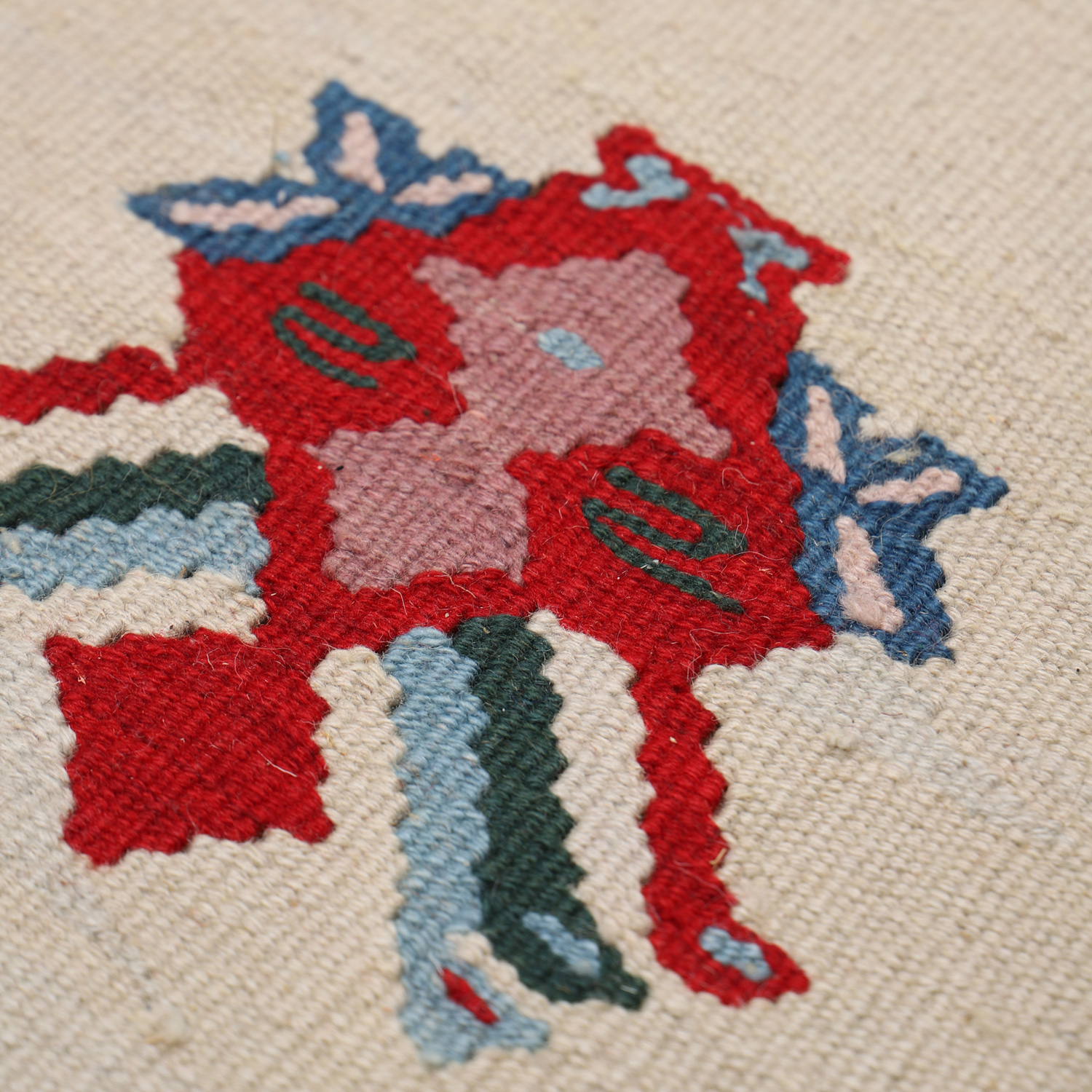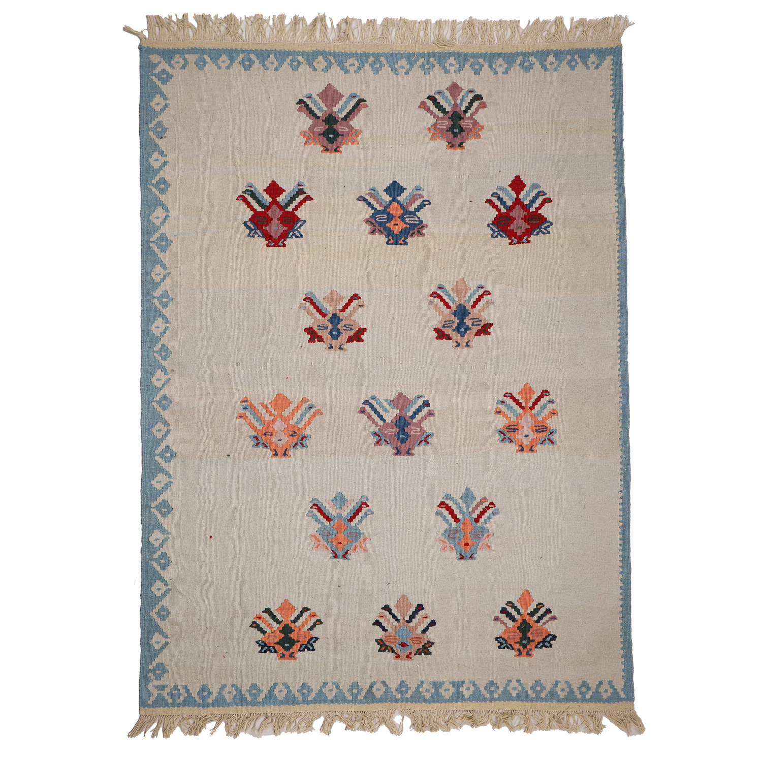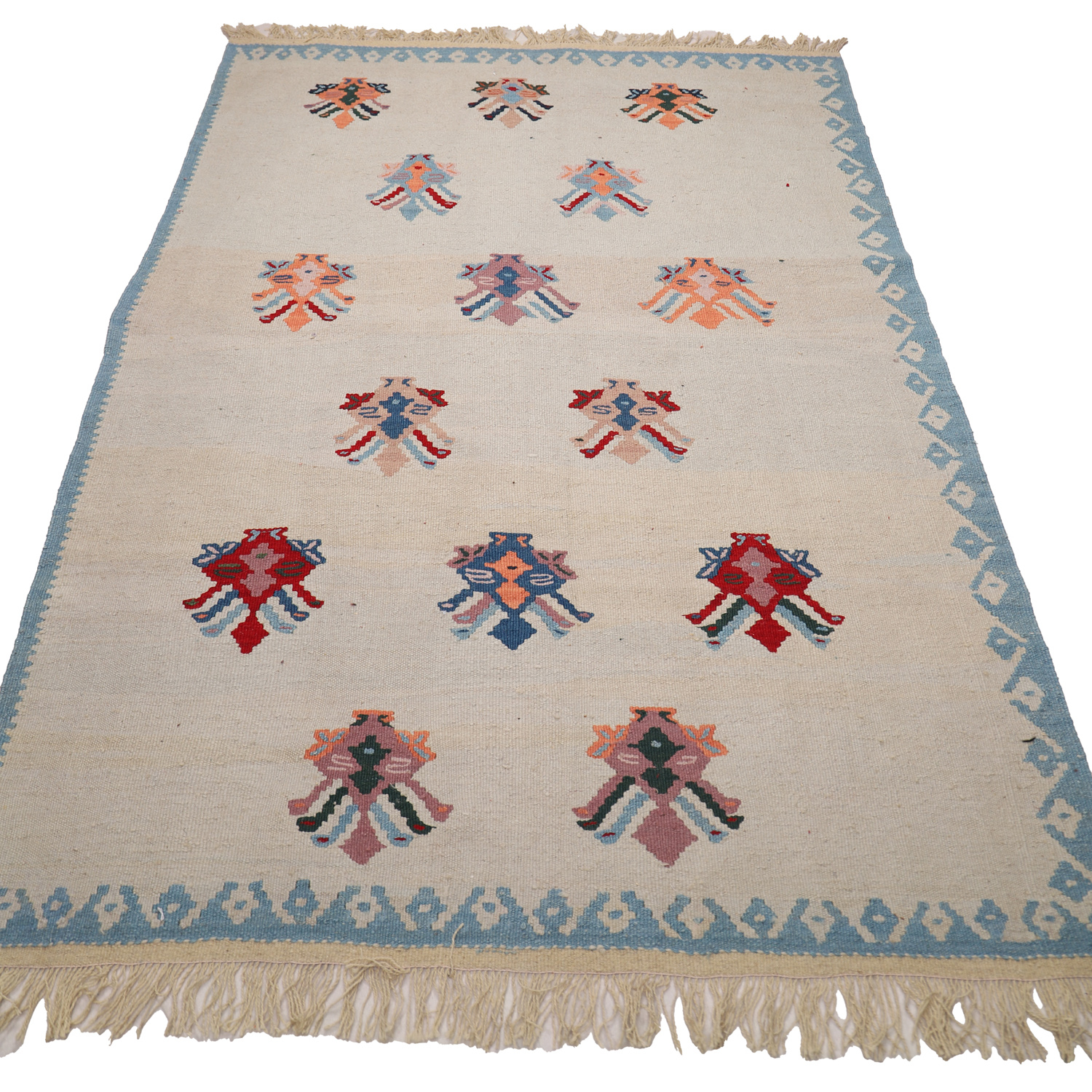 El Dokuma Yün Kilim 204×148 cm | Krem | Dekoratif Kilim