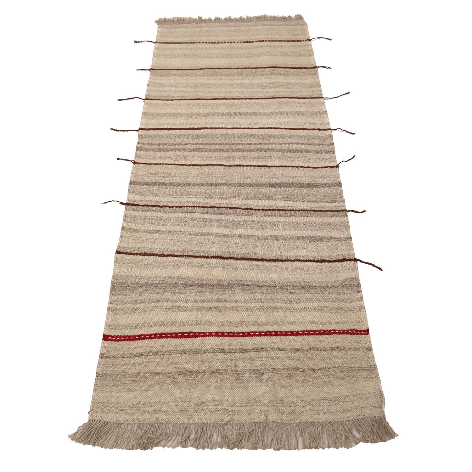 El Dokuma Yün Kilim 200×77 cm | Krem | Sanatsal Tasarım